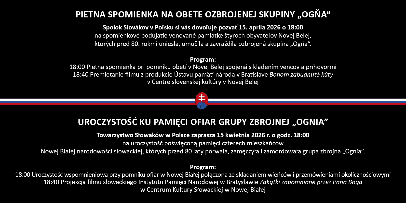 Súčasťou večera bude aj premietanie filmu Bohom zabudnuté kúty a kladenie vencov k pamätníku obetí.